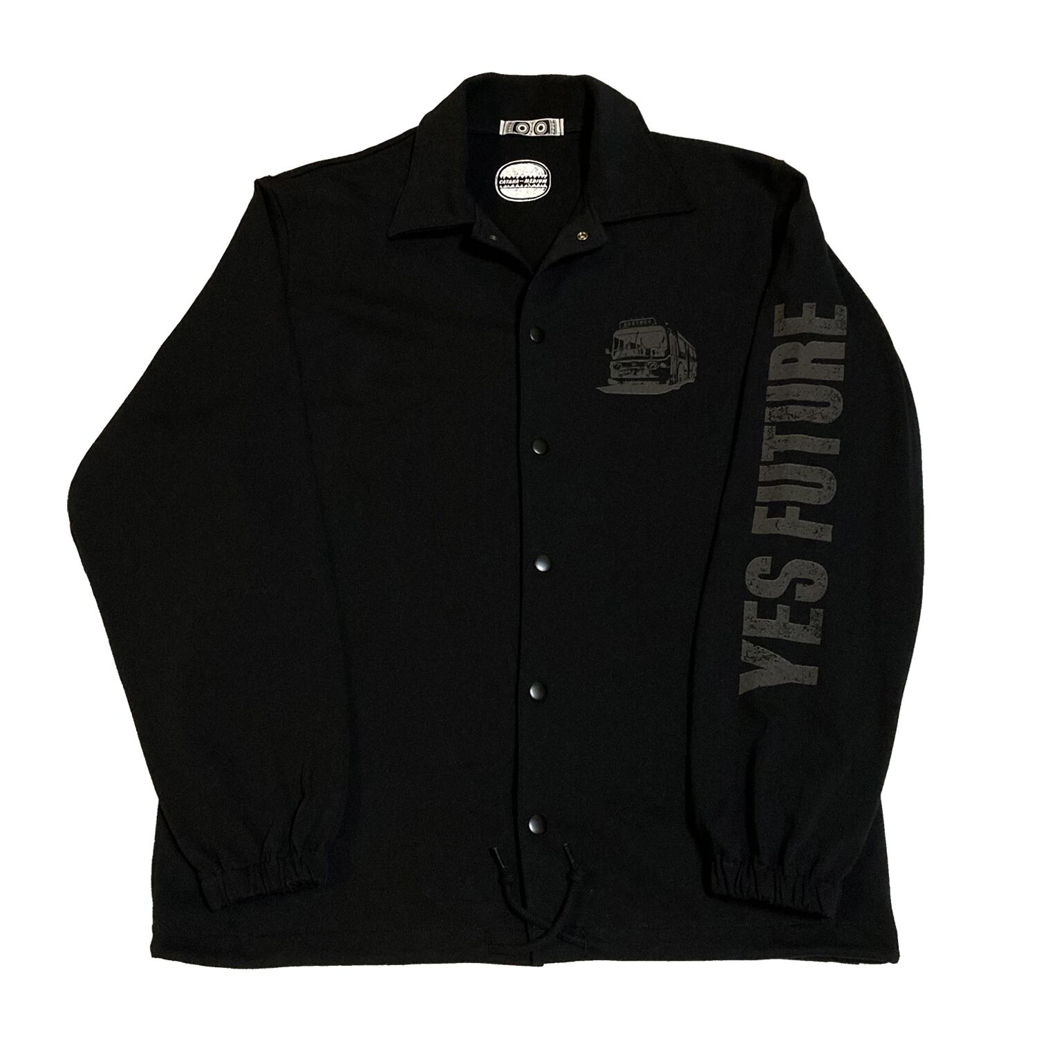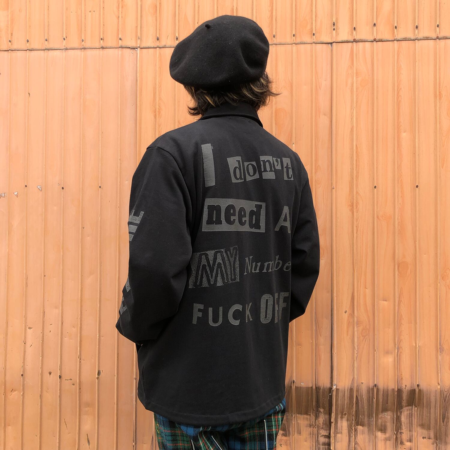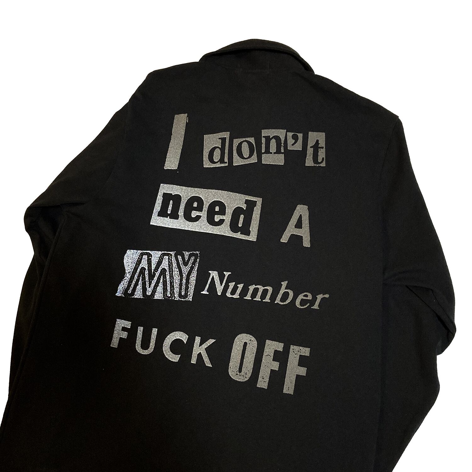 左胸にデストロイバス、左袖にはYES FUTURE、バックにはインパクト大で「My Number Fxxk Off」黙ってても背中で主張できるコットンコーチジャケットの登場。