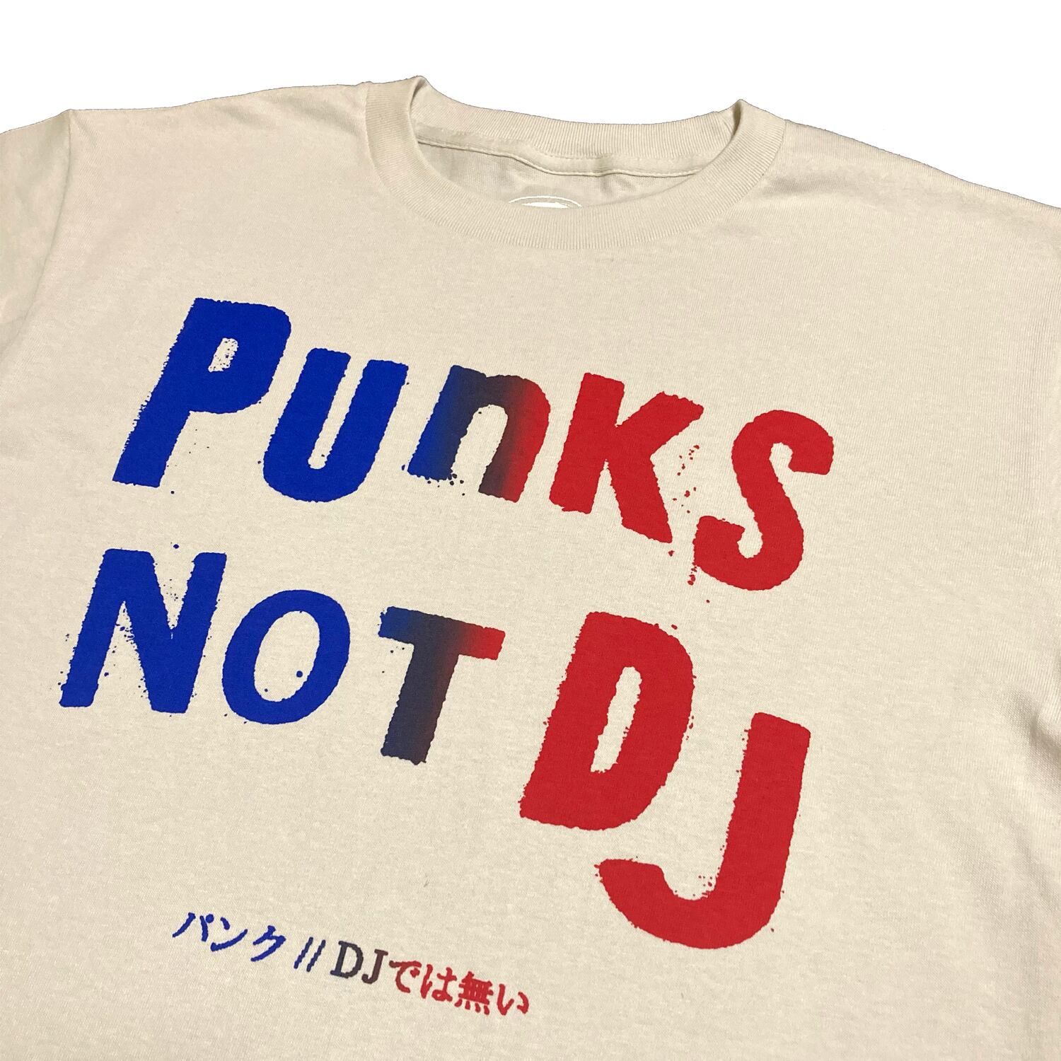 Takacho London氏が営んでいたPrimitive Sonic Cafe”CHELSEA” のクロージング パーティーの名が”Punks Not Dj”というのはマニアの間で周知の事実だが、十数年前、Blackbootsで行われた1%13のエキシビションで、このデザインが施された当時のフライヤーを見た瞬間、あの娘にひとめぼれ状態。「いつか必ずこのTシャツを作りたい!そしてそれを着てDjしたい!」という熱意を共にTakacho London氏に嘆願すること数年…そして今年、CATANAのデザイナーでもあるDj Morrieoのロンドン進撃を機に許可を得る事ができ、今回CATANAからリリースする運びとなった。