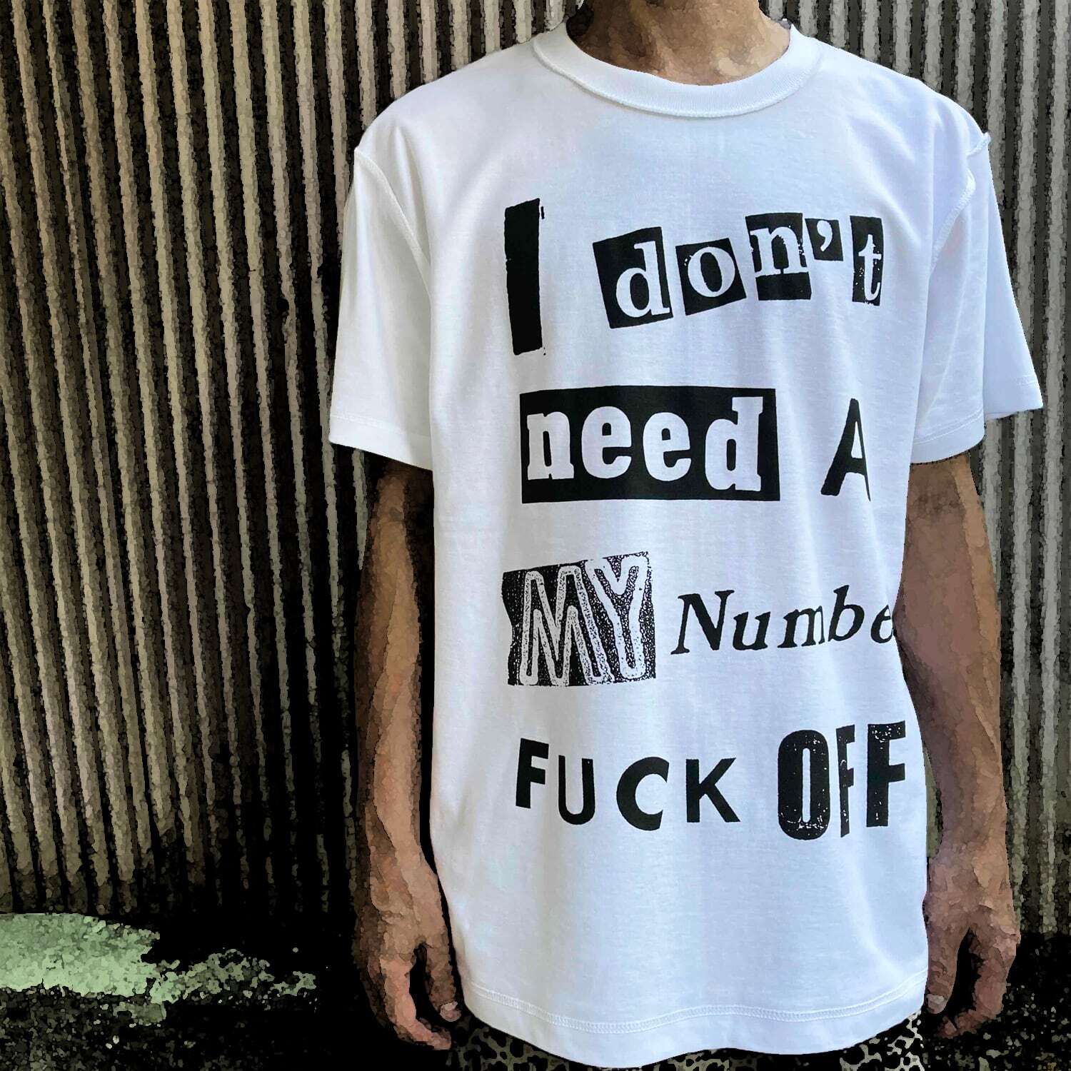 全てが問題だが、中でもわかり易いマイナンバーをピックアップ。番号なんかで飼い殺されてたまるか!!コイツを着ればお洒落しながらでも意思表示ができ、567の如く日本中に我々庶民の意思を伝染させる事が可能となる優れもの。